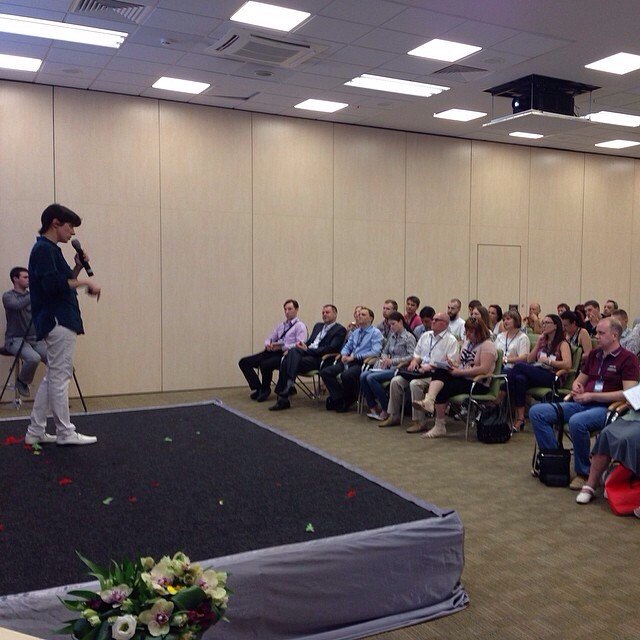 В «Петроконгресс» я попадаю далеко не к началу конференции. Все давно в зале, но на входе меня встречает организатор, идейный вдохновитель и просто замечательный тренер Влад Челпаченко и … первым делом забирает у меня чемодан! Как не уезжала из Сочи, честное слово!